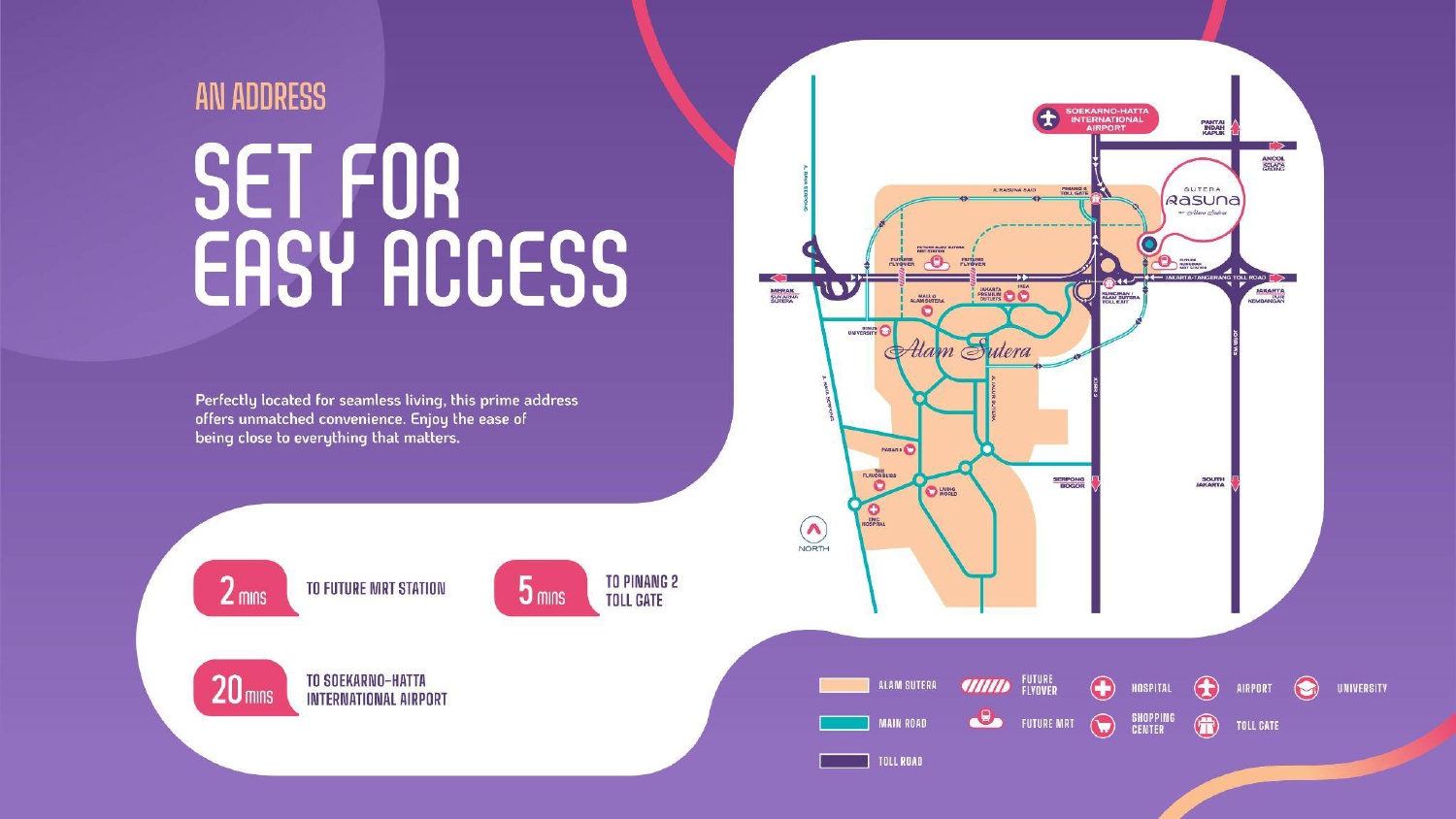 kawasan Alam Sutera 2, dekat dari Pintu Tol & IKEA, hanya 15 menit ke Bandara, dan 20 menit ke Jakarta.